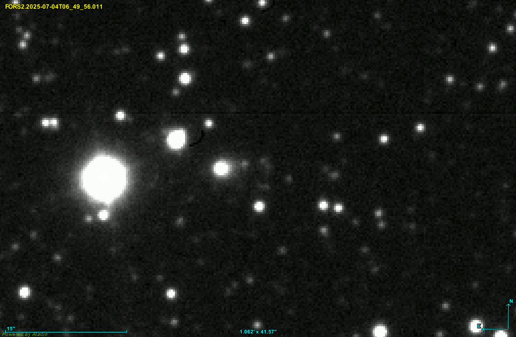 Komeet 3I/ATLAS, het derde object waarvan bekend is dat het vanuit de interstellaire ruimte het zonnestelsel is binnengekomen, heeft een andere oorsprong dan zijn voorgangers. Volgens een team onder leiding van astrofysicus Matthew Hopkins van de Universiteit van Oxford is de komeet afkomstig uit de dikke schijf van de Melkweg – een heel andere omgeving dan waar de zon zich nu bevindt (ArXiv). Slechts drie keer hebben astronomen objecten door ons zonnestelsel zien bewegen in banen die alleen verklaard kunnen worden als dat object van ver buiten het zonnestelsel afkomstig is. De eerste twee waren ‘Oumuamua en komeet 2I/Borisov, die respectievelijk in 2017 en 2019 opdoken. Komeet 3I/ATLAS, ontdekt op 1 juli 2025, is de derde, en astronomen zijn druk bezig om uit te zoeken waar hij vandaan komt en hoe hij eruitziet. Hopkins en zijn collega’s hebben een protocol toegepast dat bekend staat als het Ōtautahi-Oxford-model. Dit model gebruikt gegevens van de Europese astrometrische satelliet Gaia, in combinatie met modellen van de chemie van de schijf van de Melkweg om populaties van interstellaire objecten in kaart te brengen. Bij zijn ontdekking had 3I/ATLAS een snelheid van 57 kilometer per seconde en volgde hij een koers die hem in oktober 2025 net binnen de baan van Mars zal brengen voordat hij het zonnestelsel weer verlaat. Hij heeft een middellijn van tien tot twintig kilometer, een blauwachtig oppervlak en een rodere coma dan de meeste ‘inheemse’ kometen van ons zonnestelsel. Het onderzoeksteam heeft vastgesteld dat de snelheid van de komeet past bij een oorsprong in de dikke schijf van de Melkweg – de opgezwollen delen rond de dunne schijf waar de meeste sterren van de Melkweg zich ophouden, waaronder ook onze zon. De dikke schijf bevat naar schatting ongeveer tien procent van de sterren in ons sterrenstelsel en de meeste daarvan zijn meer dan tien miljard jaar oud. Als dit wordt bevestigd, betekent dit dat 3I/ATLAS aanzienlijk ouder is dan het zonnestelsel zelf. De onderzoekers schatten zijn leeftijd op 7,6 tot 14 miljard jaar. Ter vergelijking: de zon is slechts 4,6 miljard jaar oud. (EE) (Image cedit: Olivier Hainaut et al./European Southern Observatory)