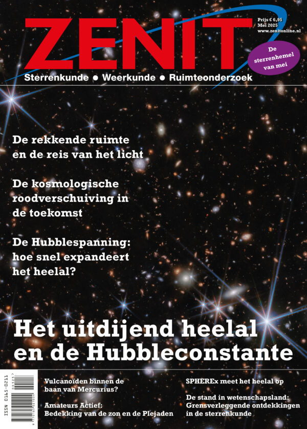 Dat het heelal uitdijt, heeft een aantal belangrijke consequenties. In het verleden waren de afstanden tussen de sterrenstelsels kleiner dan nu. Maar omdat het licht van verre objecten lange tijd door de uitdijende ruimte reist alvorens ons te bereiken, kan er niet eenduidig over afstanden in het heelal worden gesproken. Verder is het licht van verre sterrenstelsels door het ‘oprekken’ van de ruimte naar de rode kant van het spectrum verschoven. We weten dat het heelal versneld uitdijt, dus verwacht je dat de roodverschuiving alsmaar verder toeneemt, maar het tegendeel blijkt het geval. Ook de Hubbleconstante, die de evenredigheid uitdrukt tussen de vluchtsnelheid van sterrenstelsels, als gevolg van de expansie van het heelal, en de afstand, neemt vreemd genoeg in de loop van de kosmische tijd af. Hoe deze schijnbare tegenstrijdigheden kunnen worden opgelost, is te lezen in twee van de nu volgende thema-artikelen. Het derde artikel handelt over de laatste stand van zaken rond de Hubblespanning: twee verschillende meettechnieken leiden tot twee verschillende uitkomsten van de Hubbleconstante, alhoewel er volgens sommige sterrenkundigen helemaal geen Hubblespanning bestaat.